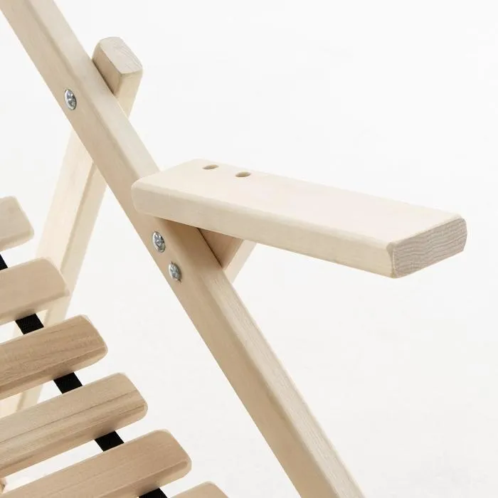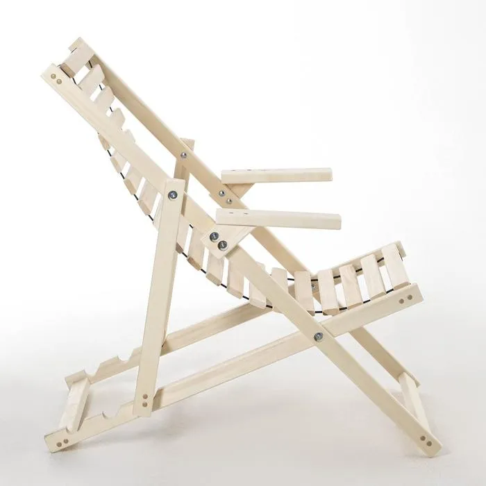 Шезлонг изготовлен из натурального дерева, что делает его прочным, красивым и долговечным.