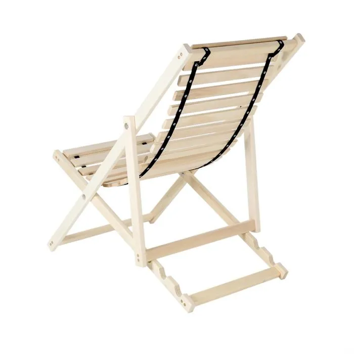 Шезлонг изготовлен из натурального дерева, что делает его прочным, красивым и долговечным.