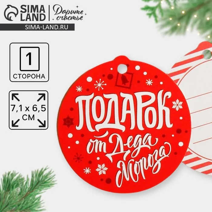 Шильдик декоративный на подарок «Подарок от Деда Мороза», 6,5 х 7,1 см — Характеристики