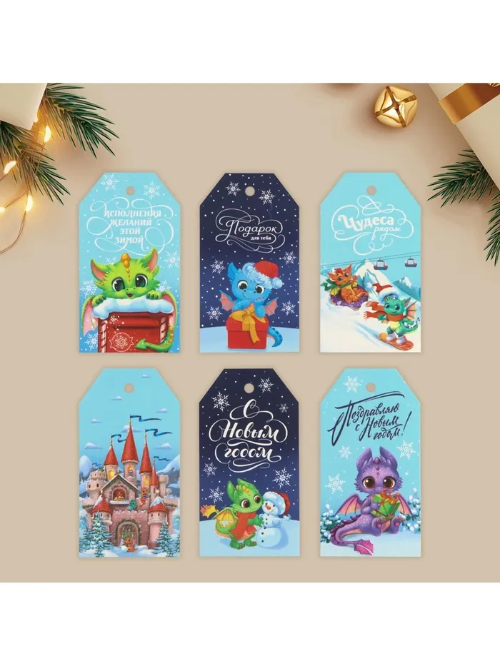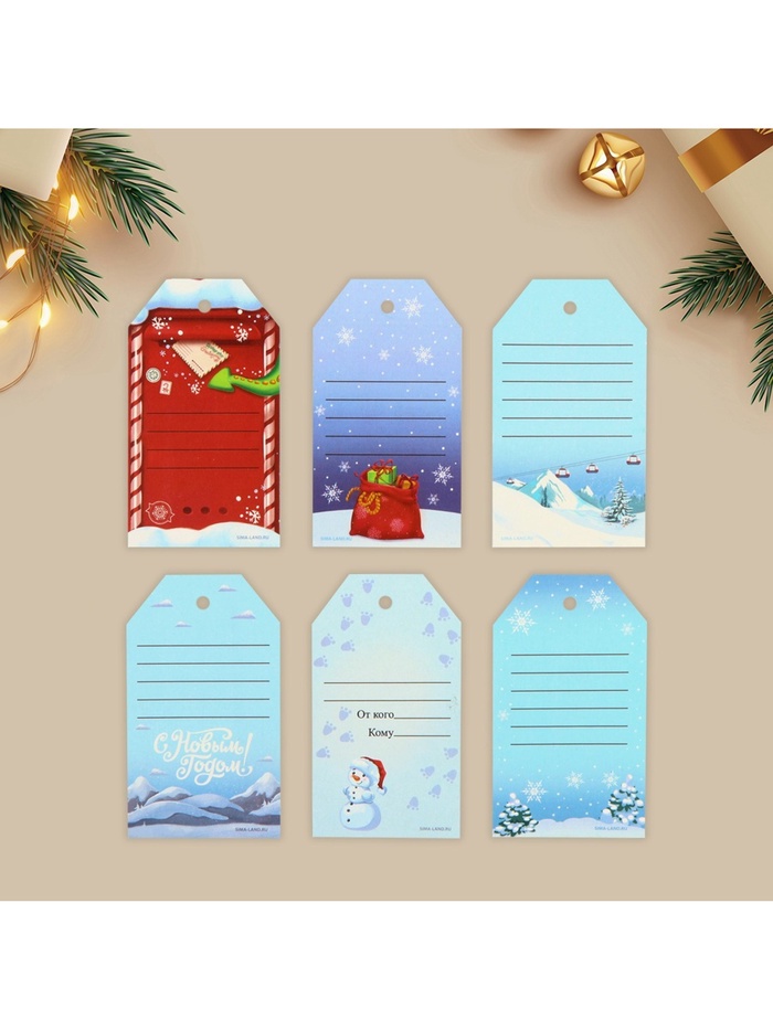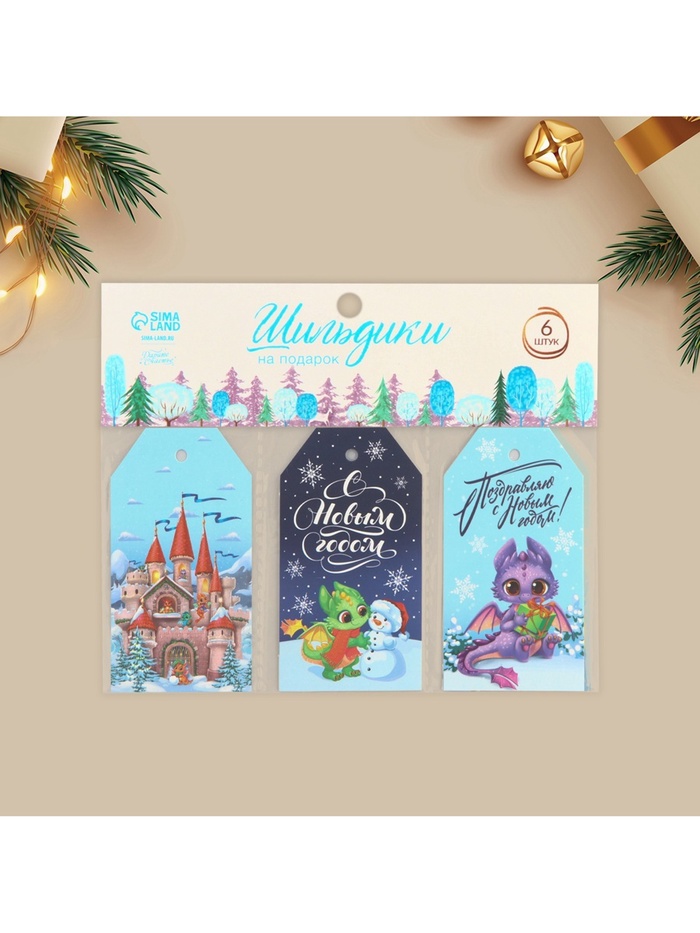 Шильдик декоративный в наборе «С Новым годом», 6 шт., 5×9 см — Характеристики