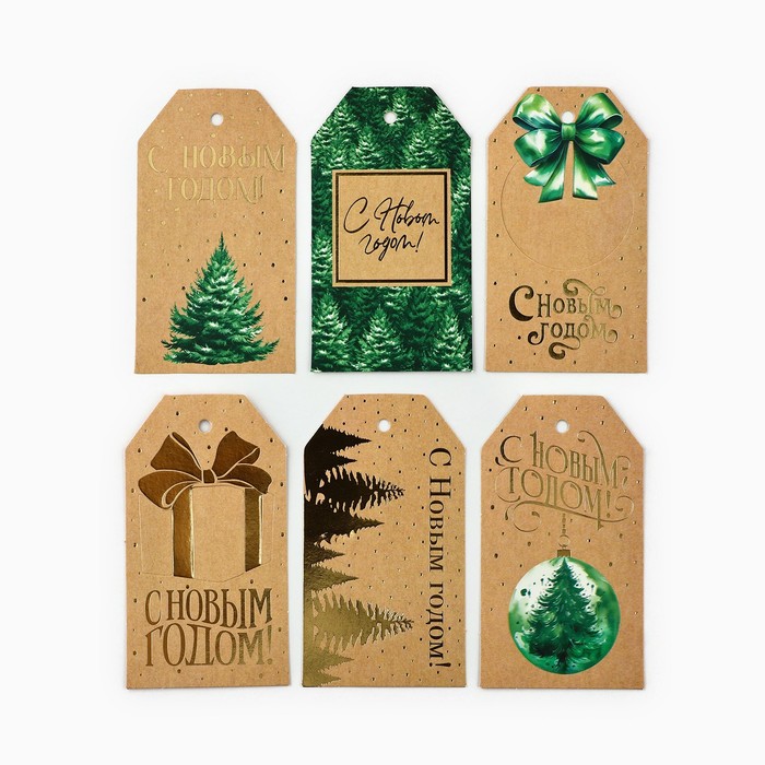 Шильдик декоративный в наборе «С Новым годом», крафт, 9 х 5 см, тиснение — Характеристики