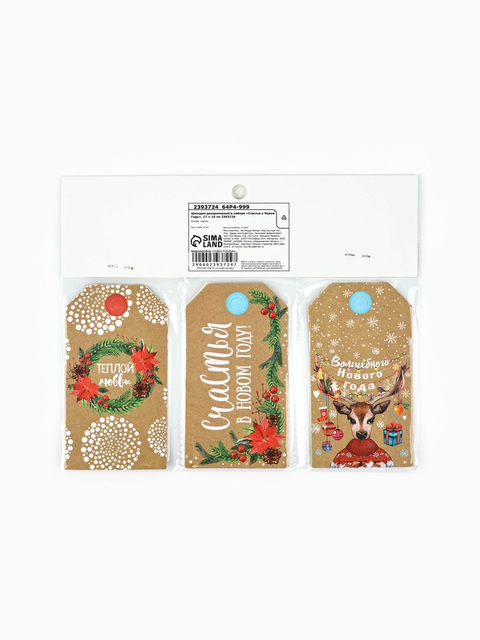 Шильдик декоративный в наборе «Счастья в Новом Году», 9 х 5 см, 6 шт — Характеристики