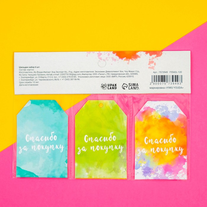 Шильдик флористический "Спасибо за покупку", набор 6 шт., 7 х 5 см