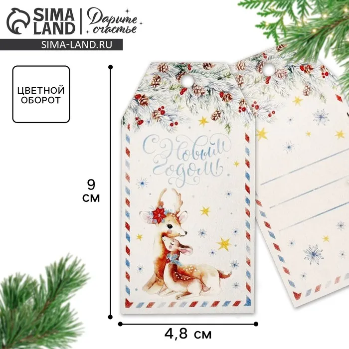 Шильдик на подарок Новый год «Оленята» 4,8 х9,0 см — Характеристики