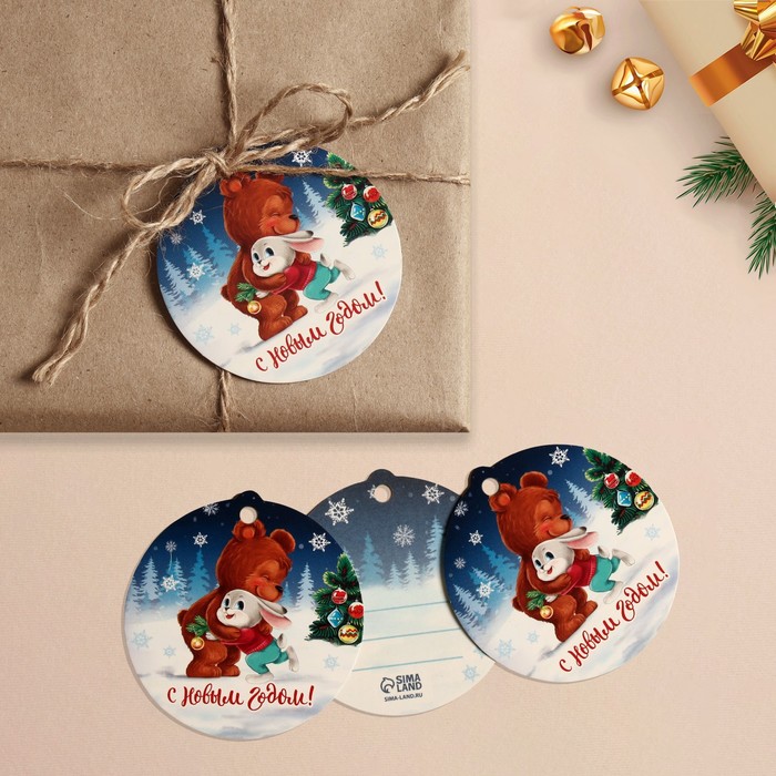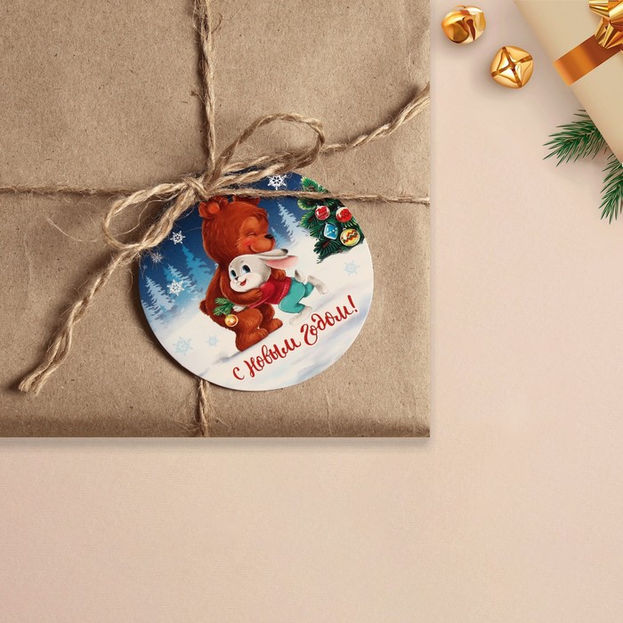 Шильдик на подарок «Зайка с мишкой», 6,5 х 6,7 см — Характеристики