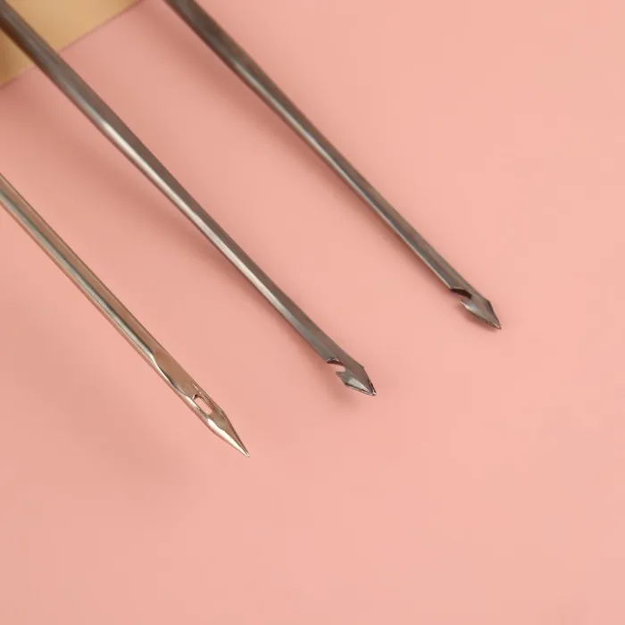 Это швейное шило с тремя насадками решает различные задачи при работе с плотными материалами. Его специализированные наконечники обеспечивают точное выполнение операций, необходимых для кожевенного дела, создания отверстий в ткани и проведения ремонтных работ.