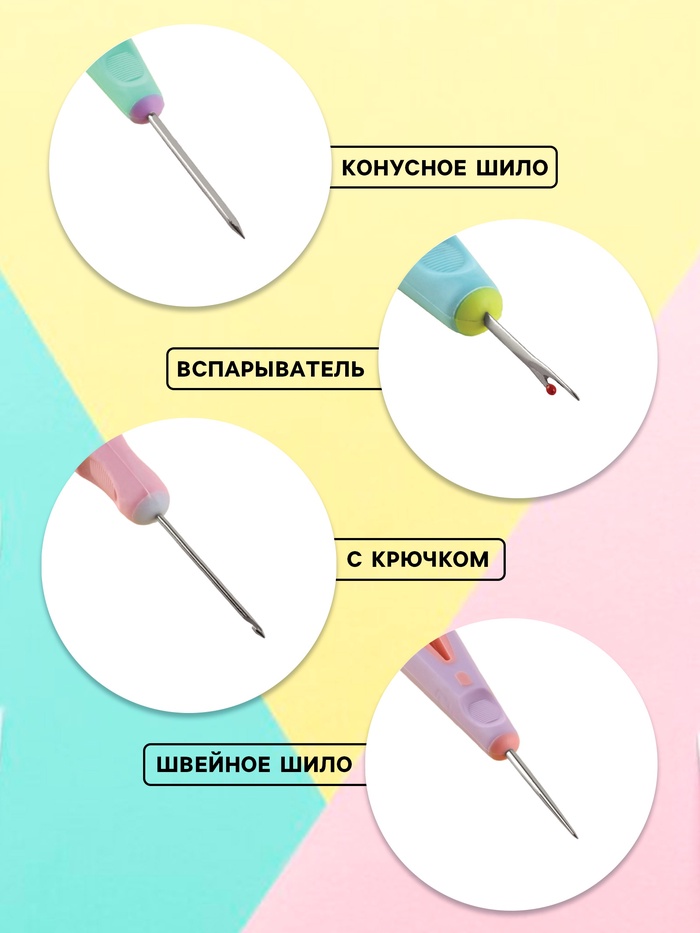 Шило швейное, вспарыватель, набор 4 шт., с прорезиненными ручками — Характеристики