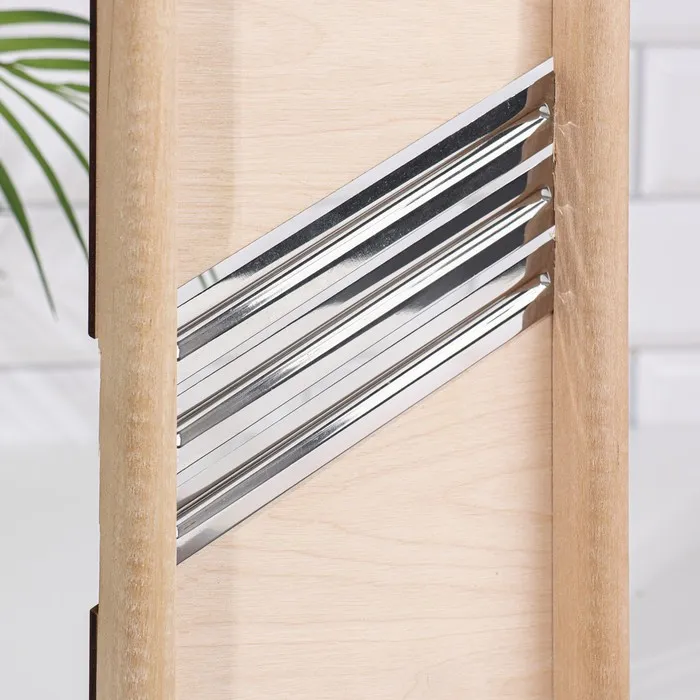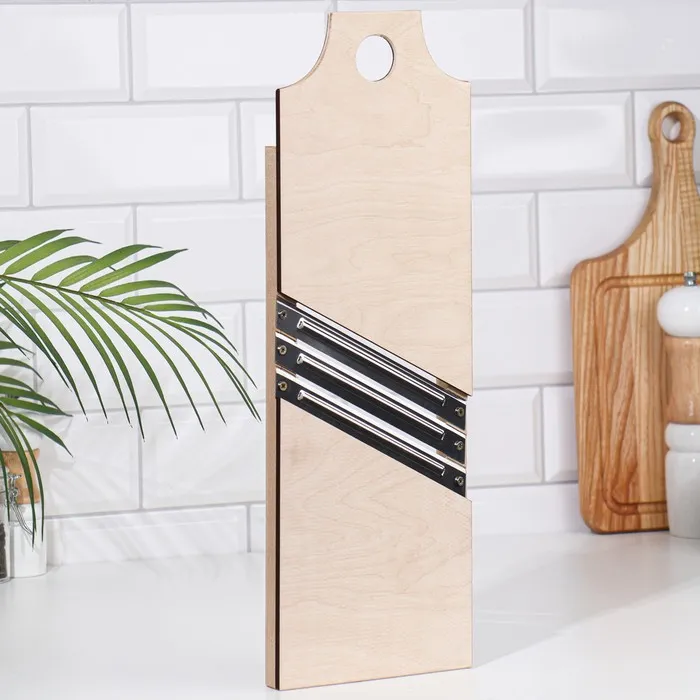 Ручная шинковка позволяет быстро и без особых усилий нарезать овощи. Изделие выполнено из дерева, имеет острое лезвие из высококачественной стали.