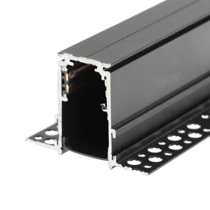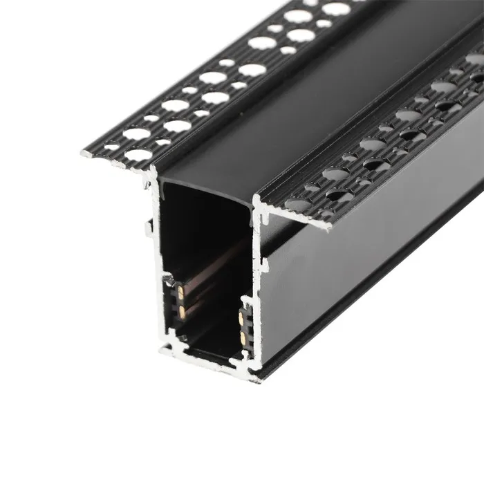 Компактный и стильный дизайн шинопровода позволяет легко интегрировать его в любой интерьер. Благодаря встраиваемому монтажу, он практически незаметен, сохраняя целостность потолка и не уменьшая его высоту. Алюминиевый корпус обеспечивает долговечность и надежность конструкции, а черный цвет добавляет элегантности и современности.