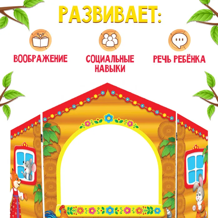 Детская ширма создана для проведения кукольных представлений. Она сделана из прочного и экологичного материала — дерева. Поэтому безопасна для детского здоровья.