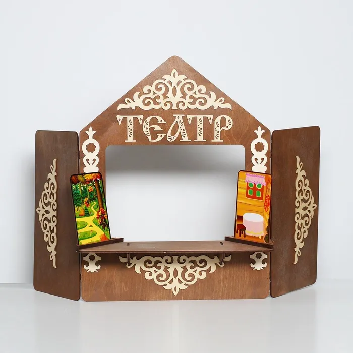 Незаменимый аксессуар для домашних театральных представлений, ширма для кукольного театра, выполненная из качественного дерева, обеспечивает надёжность и долговечность.
