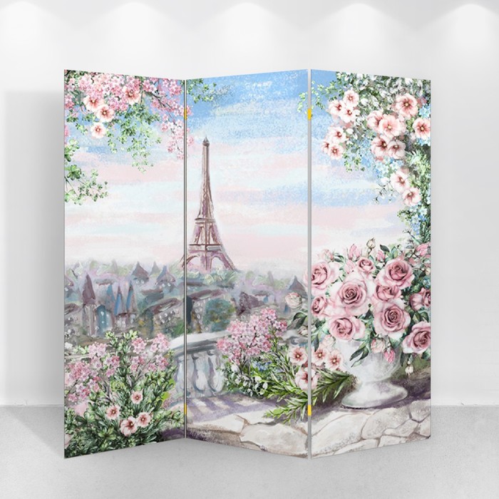 Ширма – перегородка «Дарим Красиво. Картина маслом. Розы и Париж», 150×160 см, цвет голубой/розовый