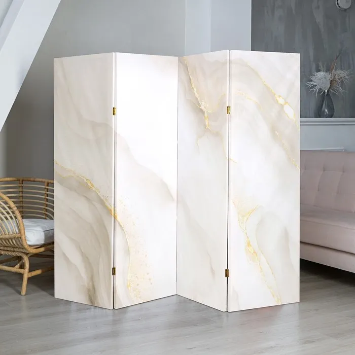 Ширма – перегородка «Дарим Красиво. Мрамор с золотой поталью», 200×160 см, цвет белый/золотой — Характеристики