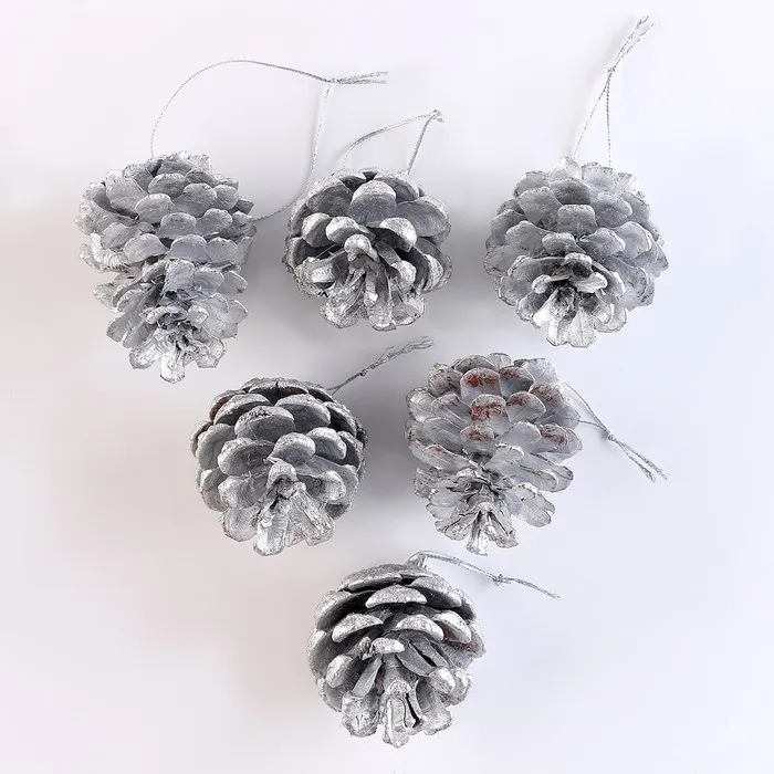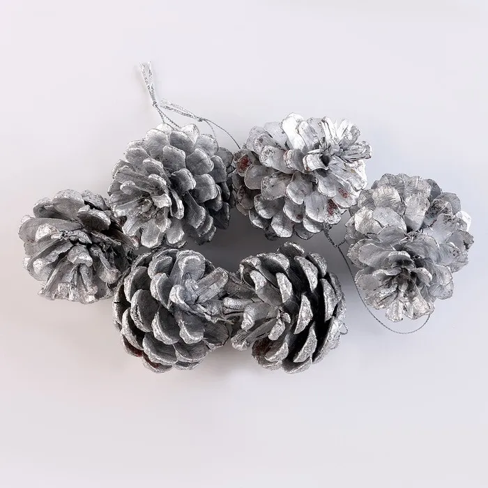 Шишки для новогоднего декора, 6 шт., в серебрянном цвете, 17.5×11.5×6 см — Характеристики