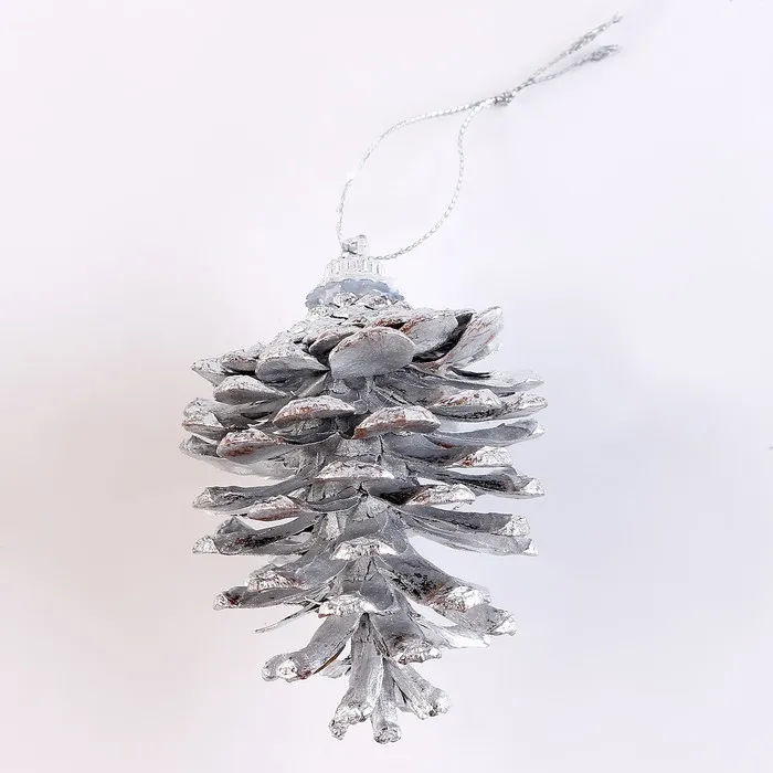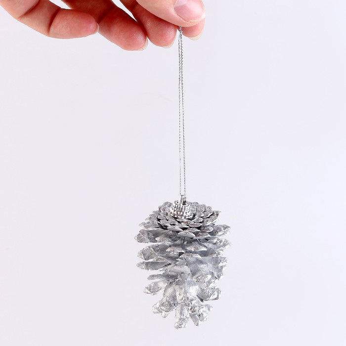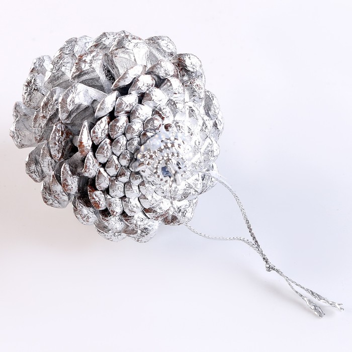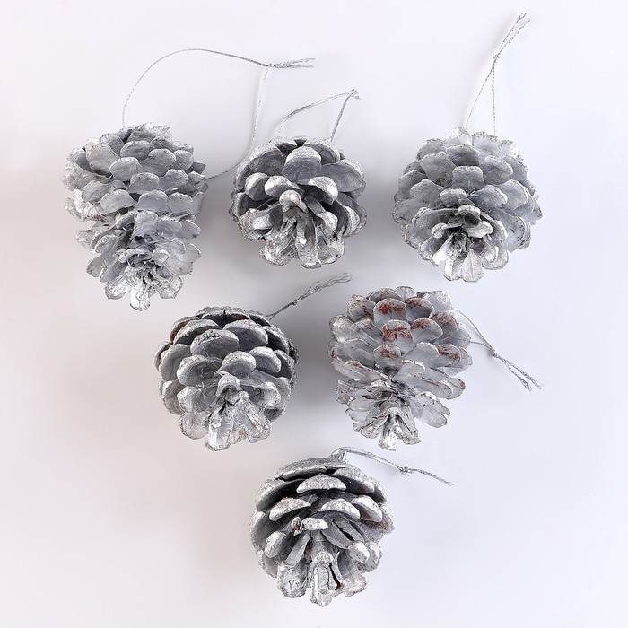 Шишки для новогоднего декора, 6 шт., в серебрянном цвете, 17.5×11.5×6 см