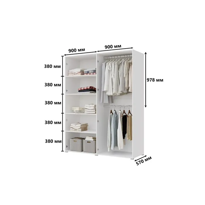 Шкаф четырехстворчатый «Горизонт», с зеркалами, 1800×570×2072 мм, цвет белый/белый — Характеристики