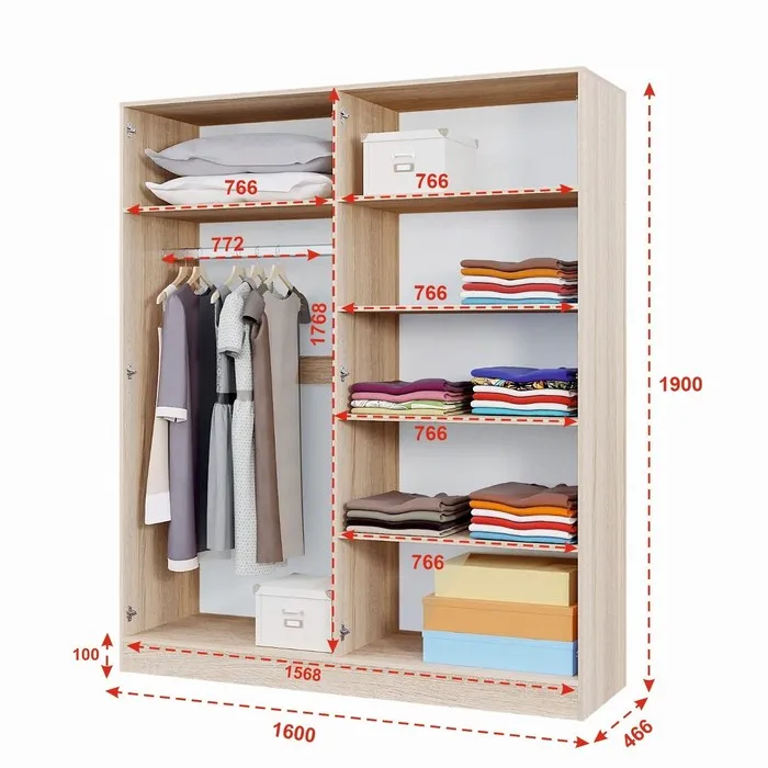 Шкаф четырехстворчатый «Леси», 1600×1900×466 мм, цвет дуб сонома/дуб сонома/Белый — Характеристики