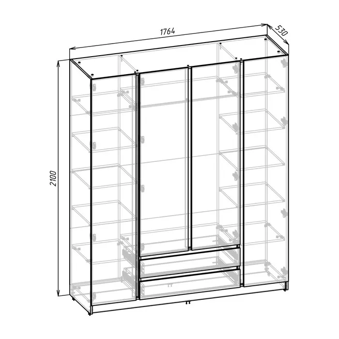 Шкаф четырёхстворчатый, 1760×530×2100 мм, цвет крафт белый — Характеристики