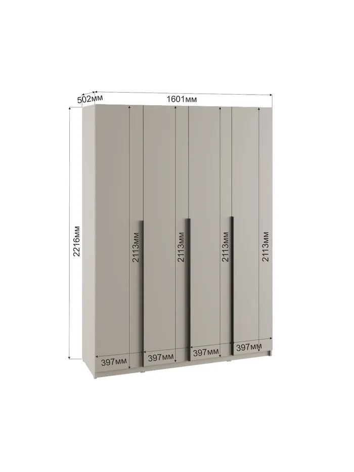 Шкаф четырёхстворчатый «Бруно», 1600×505×2216 мм, цвет кашемир — Характеристики