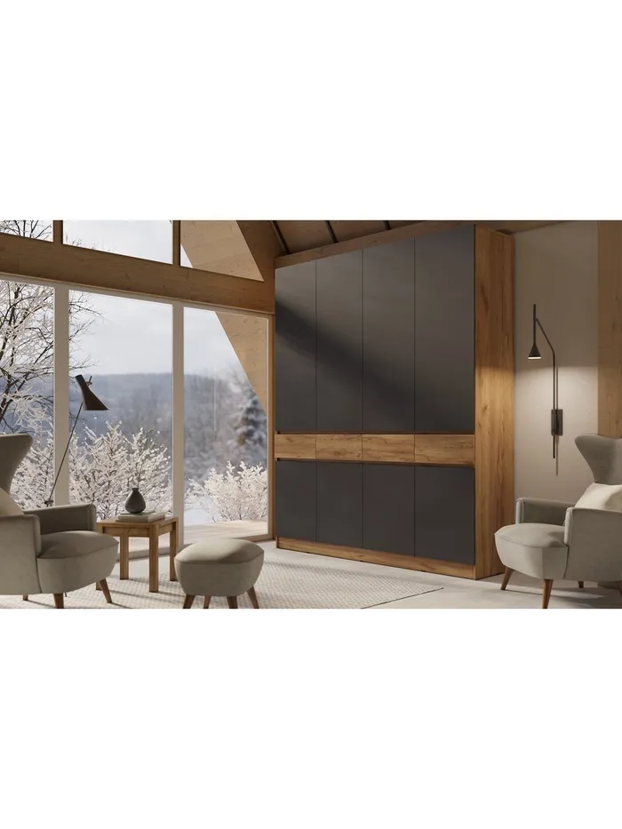 Шкаф четырёхстворчатый «Роджина», 1998×520×2400 мм, цвет дуб крафт/графит