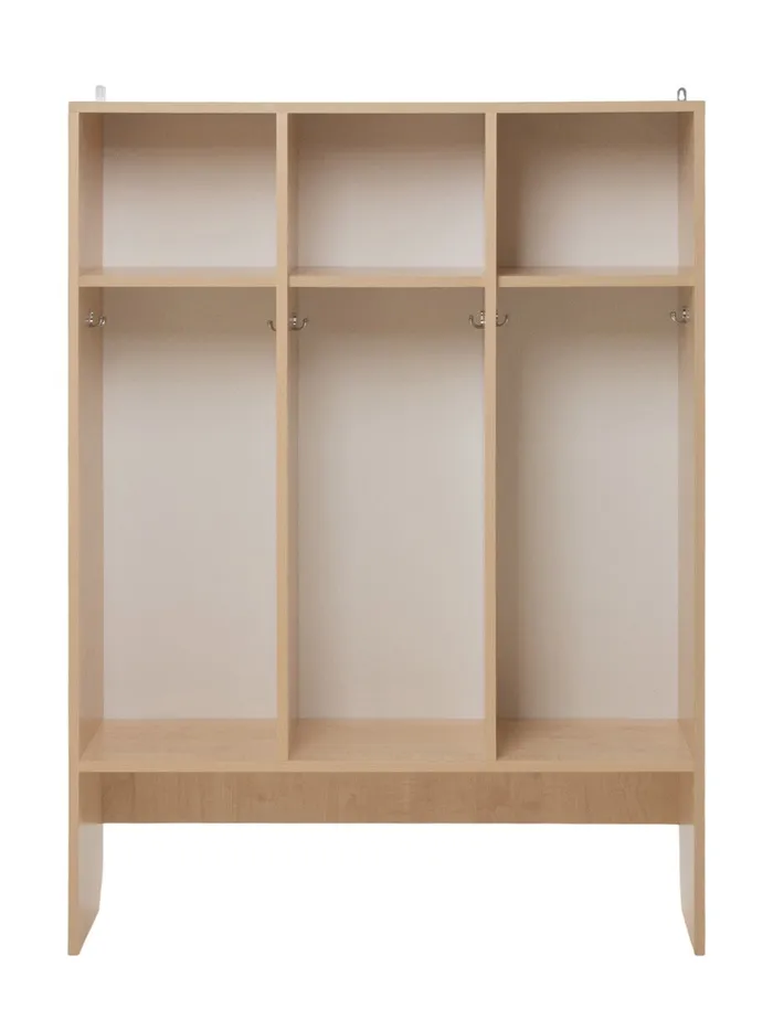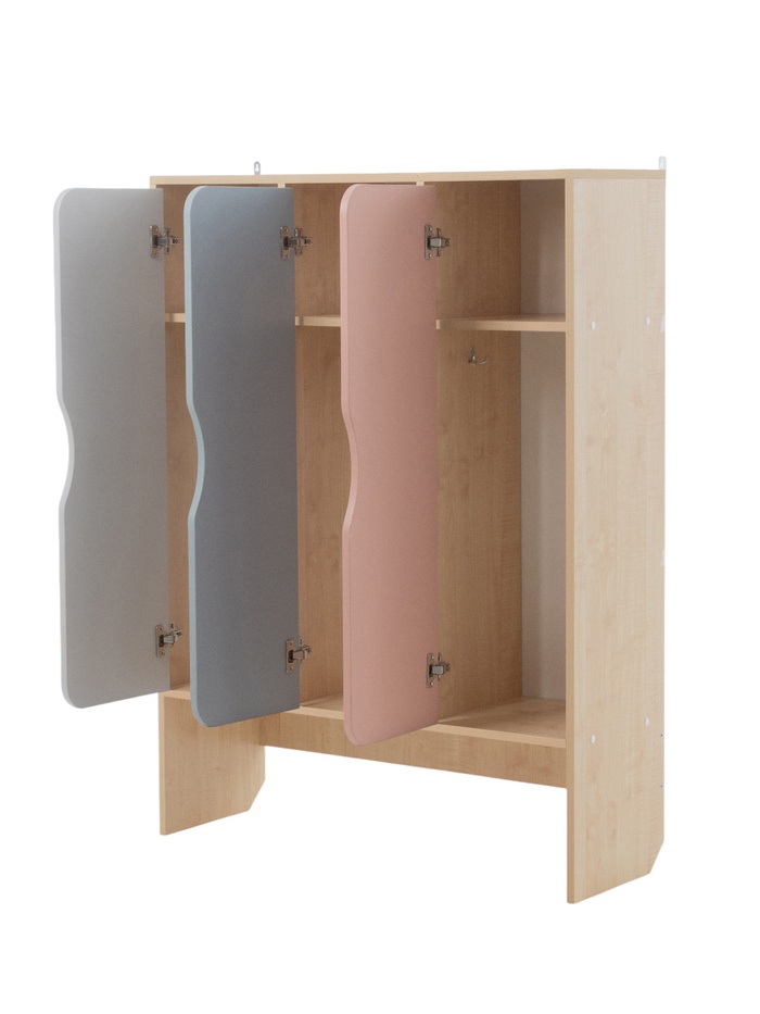 Шкаф для детского сада «Скандинавия», 3 секции, с нишей под скамью, 964×320×1300 мм, цвет клён/розовый/кенди/серый — Характеристики