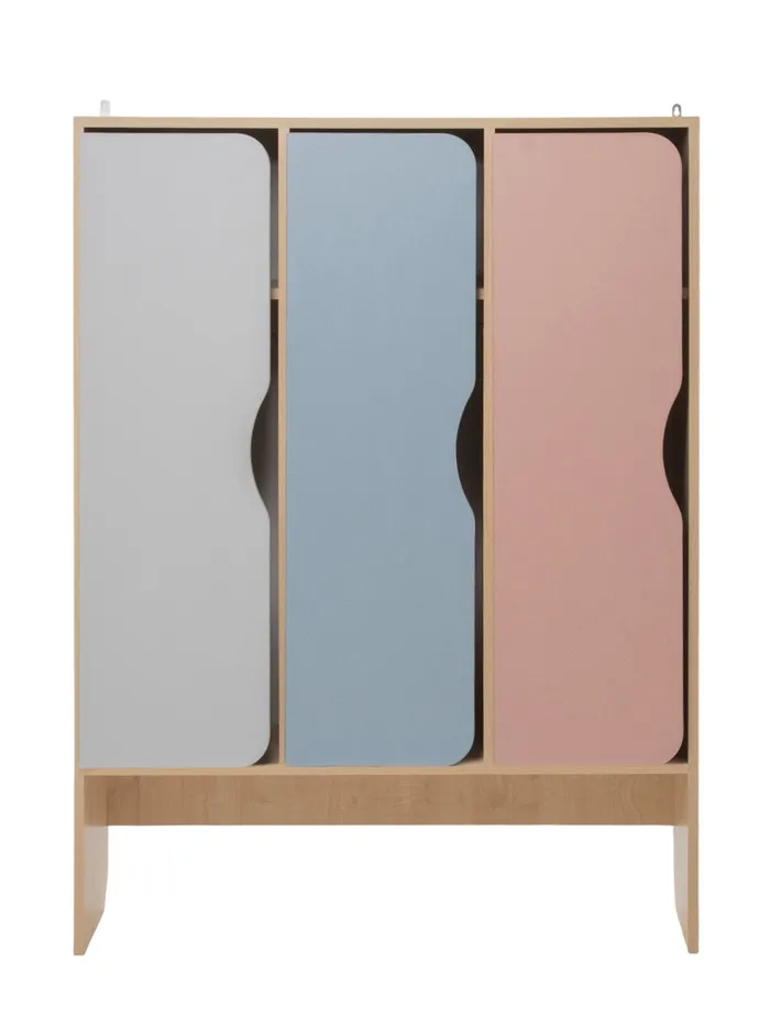 Шкаф для детского сада «Скандинавия», 3 секции, с нишей под скамью, 964×320×1300 мм, цвет клён/розовый/кенди/серый