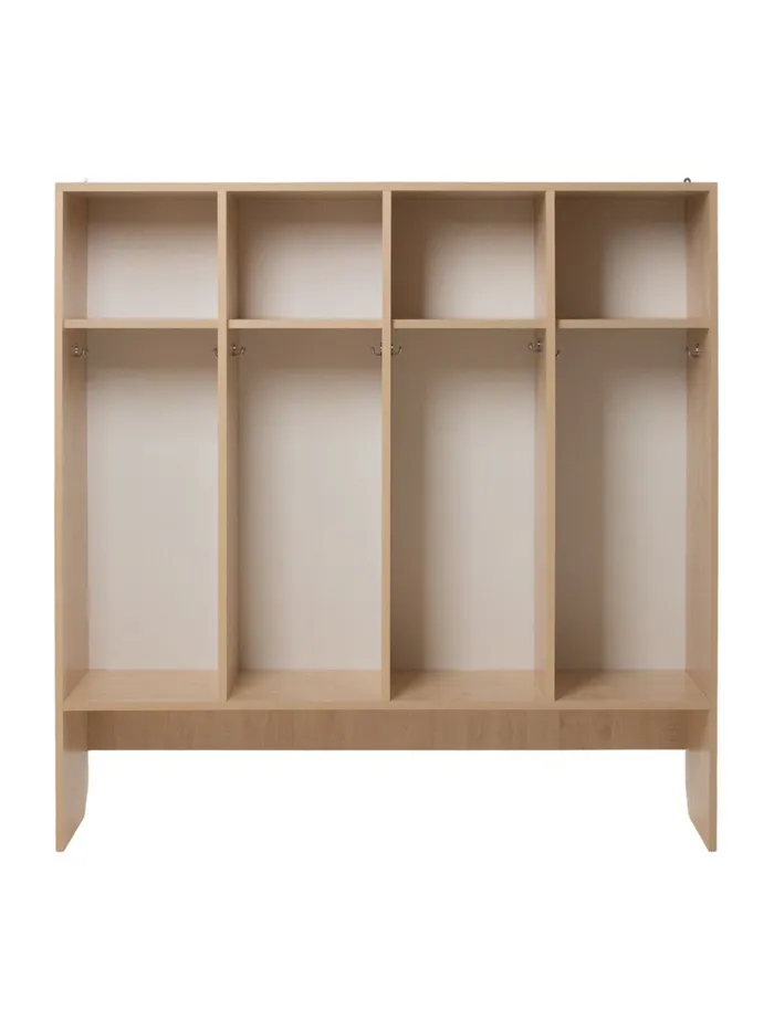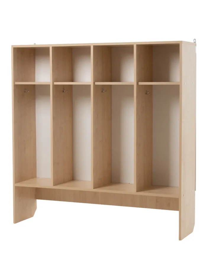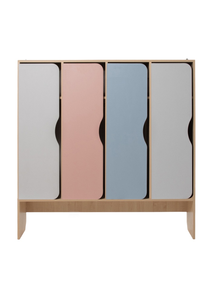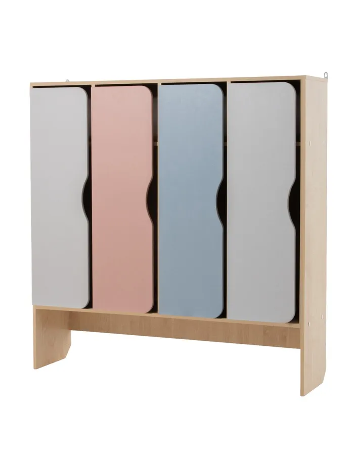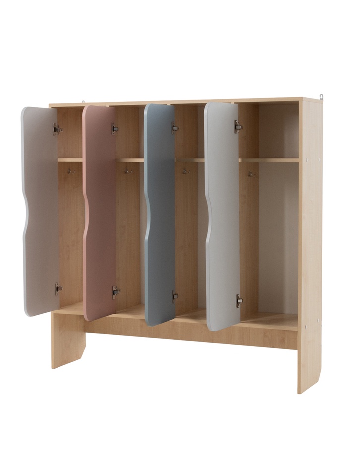 Шкаф для детского сада «Скандинавия», 4 секции, с нишей под скамью, 1280×320×1300 мм, цвет клён/кенди/серый/розовый — Характеристики