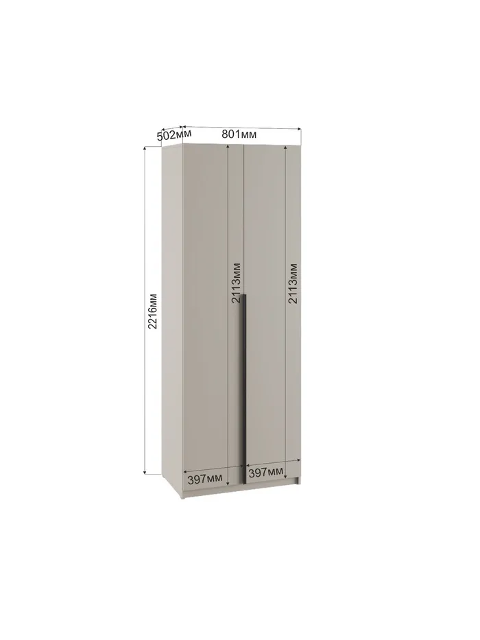 Шкаф двухстворчатый «Бруно», 800×505×2216 мм, цвет кашемир — Характеристики