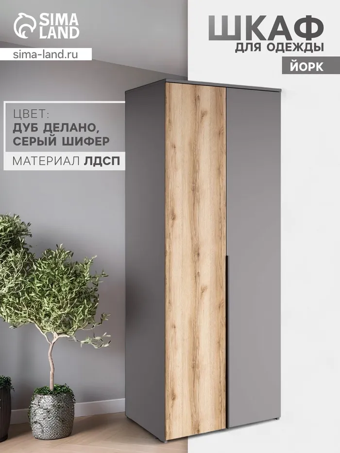 Шкаф двухстворчатый для одежды «Йорк», 780×577×2020 мм, цвет серый шифер/дуб делано — Характеристики