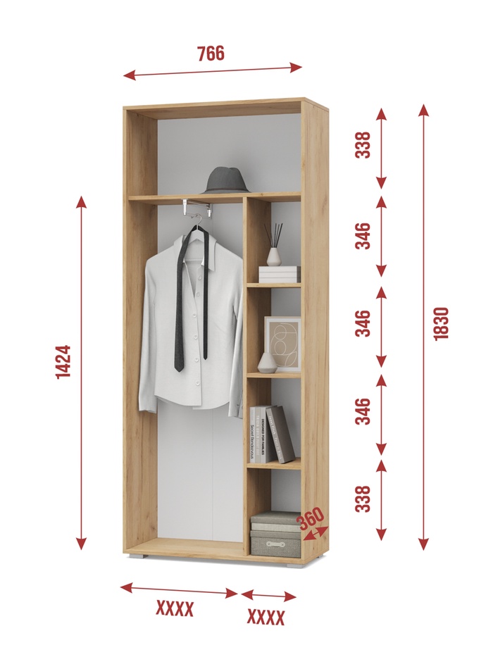 Шкаф двухстворчатый «Флорида Ф20», 766×360×1830 мм, цвет дуб золотой/графит — Характеристики