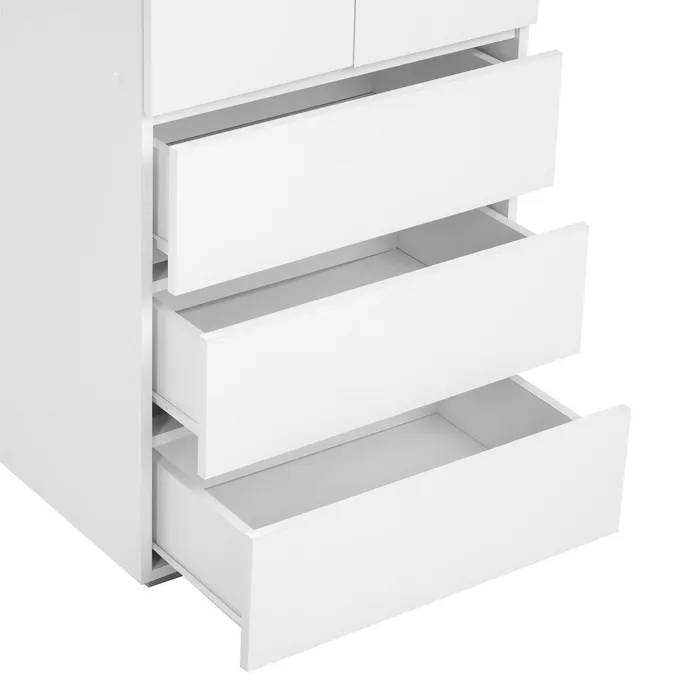 Шкаф Кеос с 3мя ящиками - элегантный дизайн и функциональность, он станет отличным выбором для хранения одежды, обуви и аксессуаров. Выполнен из качественного ЛДСП белого цвета, который легко сочетается с любым интерьерным решением. Плавное открытие створок: благодаря качественной фурнитуре и петлям, все створки шкафа открываются плавно и легко, обеспечивая удобный доступ к содержимому. Вместительные ящики: три ящика внутри шкафа кеос помогут организовать хранение вещей и содержать ваш гардероб в порядке. Стильный дизайн: элегантный белый цвет шкафа кеос придаст вашему интерьеру изысканность и стиль, подчеркнет ваш вкус и заботу о комфорте.