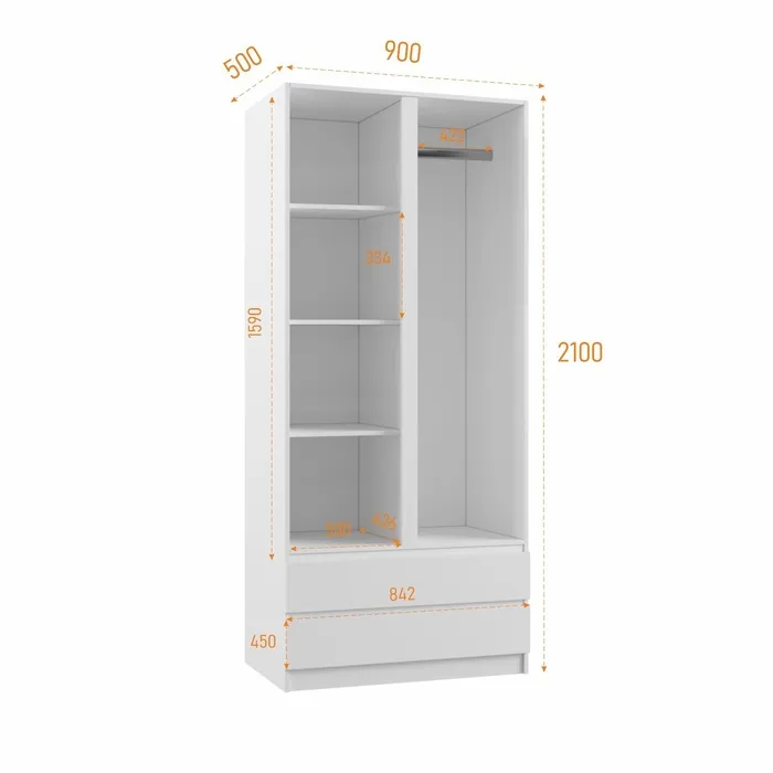Шкаф двухстворчатый Клик Мебель «Мадера», 2 ящика, 900×500×2100 мм, цвет белый — Характеристики