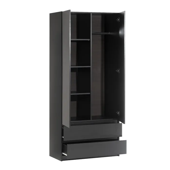 Шкаф двухстворчатый Мадера с 2 ящиками, 900х500х2100, Черный — Характеристики