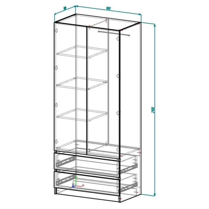 Шкаф 2х ств Мадера с 2-мя ящиками - это удобная и вместительная система хранения, включающая 3 полки для белья, 2 выдвижных ящика и 1 штангу для одежды. Шкаф 2х ств с двумя ящиками оснащён отделениями, которые вместят в себя одежду, постельное бельё, коробки с обувью и многое другое. Шкаф выполнен из прочной ЛДСП с эффектным покрытием и будет отлично смотреться в интерьере любого стиля. Выдвижные ящики на надежных роликовых направляющих. В этом шкафу вы с легкостью разместите все свои вещи и даже длинные платья, юбки, пальто.