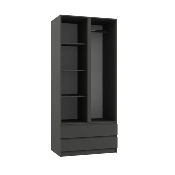 Шкаф двухстворчатый Мадера с 2 ящиками, 900х500х2100, Графит — Характеристики