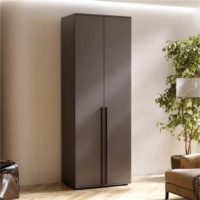 Шкаф Норд - это отличное решение для дома или офиса, вместительность шкафа может быть увеличена за счет добавления антресоли. Тонкие металлические ручки и контрастная кромка подчёркивают лаконичную геометрию изделия.