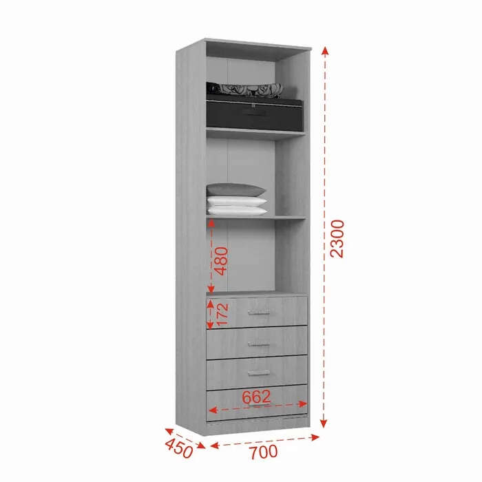 Шкаф двухстворчатый Орион с ящиками, 700х2300х450, Белый/Белый — Характеристики