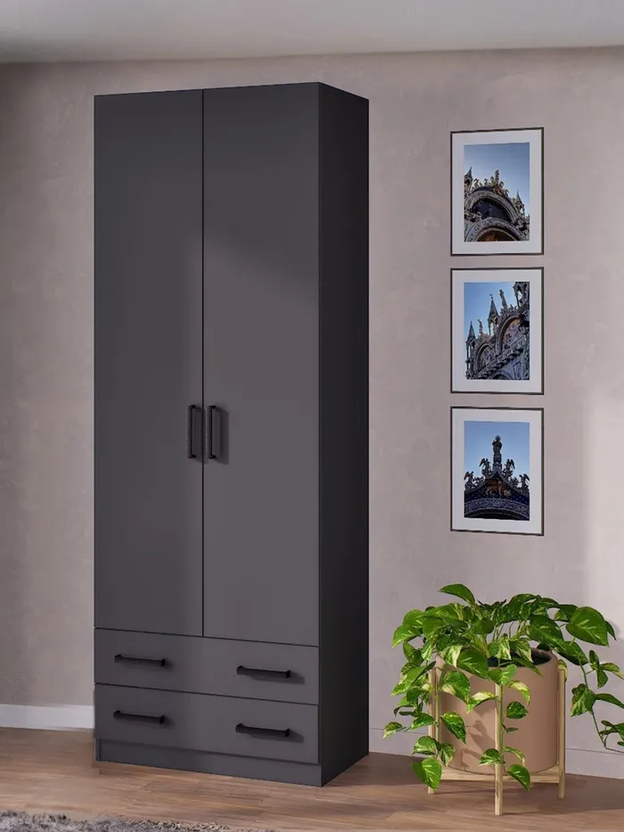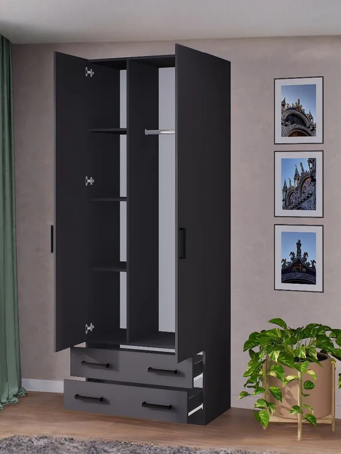 Шкаф двухстворчатый прямой «Дуэт», 2 ящика, 800×480×2200 мм, цвет серый графит — Характеристики