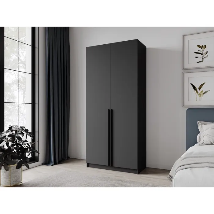 Шкаф 2х ств с доводчиками Стронг, 1000х536х2200 – это функциональное, стильное и удобное решение для хранения вашей одежды и любимых вещей. Благодаря своему дизайну, этот шкаф отлично впишется в любой стиль интерьера: лофт, минимализм, современный или даже скандинавский. Внутри шкафа находится прочная штанга, большая полка сверху и две удобные ниши для хранения снизу. Благодаря доводчикам в комплекте распашные двери не будут громко хлопать, а значит дольше прослужат механизмы — петли, замок. Плавное закрывание дверей обеспечит вам тишину и порядок в доме.