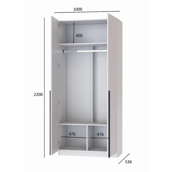 Шкаф двухстворчатый с доводчиками Стронг МДФ, 1000х536х2200, Белый/Белый софт фр2 — Характеристики