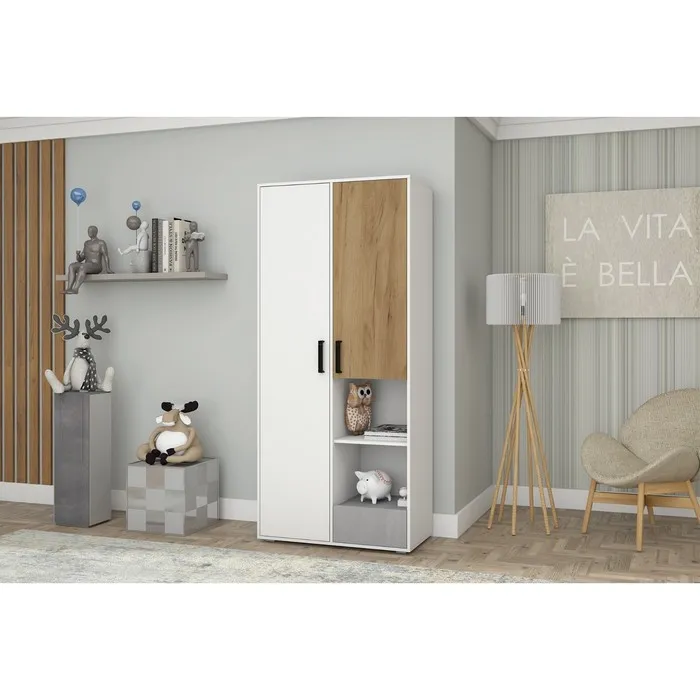 Шкаф Юпитер, 896х445х2015, Белый/Крафт золотой/Бетон - идеально подойдет к современному интерьеру молодежной или детской комнаты и функционально организует ее пространство. Выдвижной ящик снабжен шариковыми направляющими полного выдвижения для плавного хода и удобства пользования.