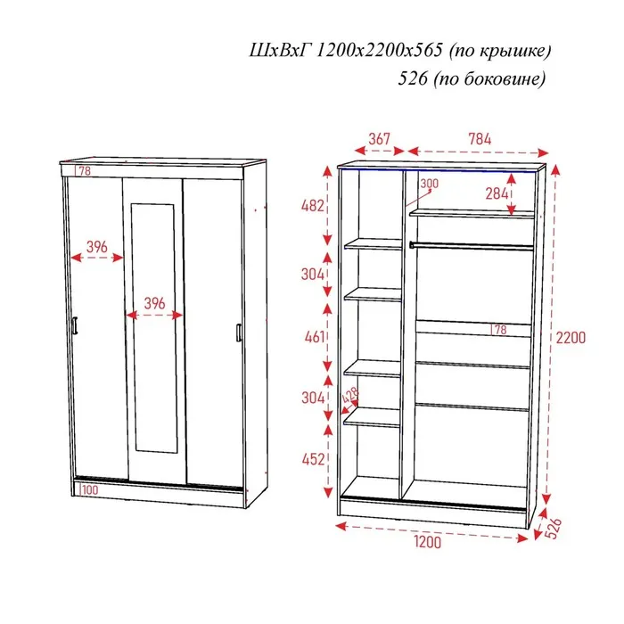 Шкаф-купе «Эко», 1200×565×2200 мм, венге/лоредо — Характеристики