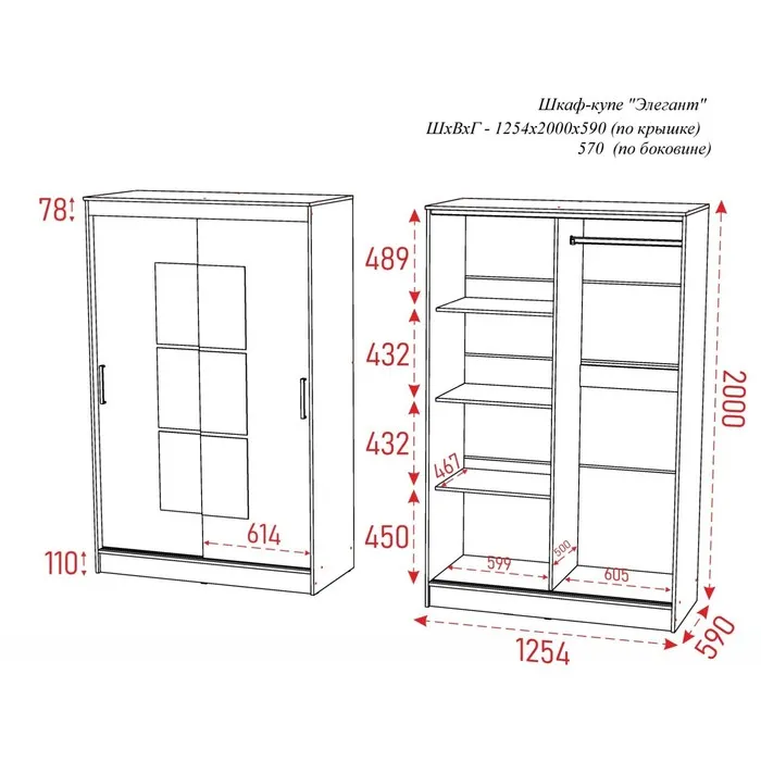 Шкаф-купе «Элегант 5», 1260×2000×590 мм, цвет венге/сосна лоредо — Характеристики