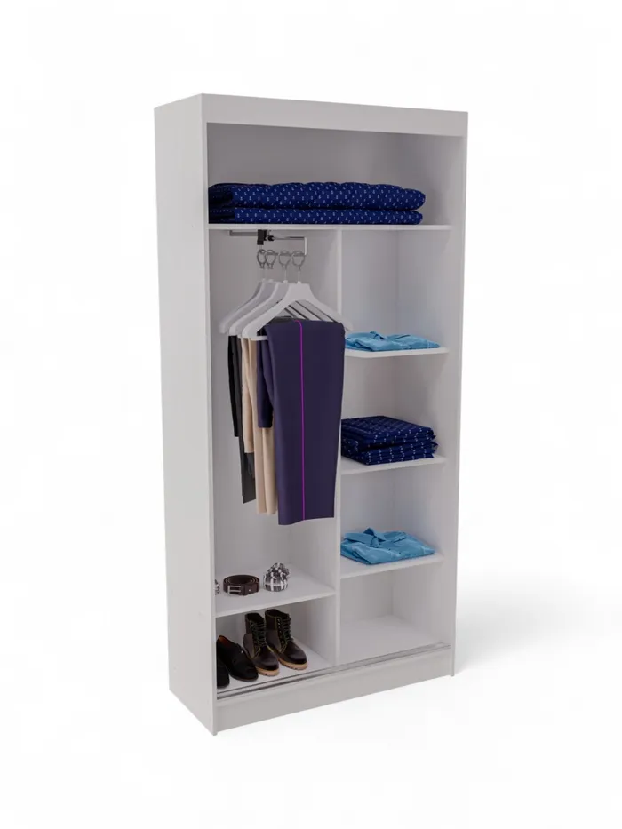 - Пространство для хранения: полки и штанга обеспечивают достаточно места для ваших вещей.