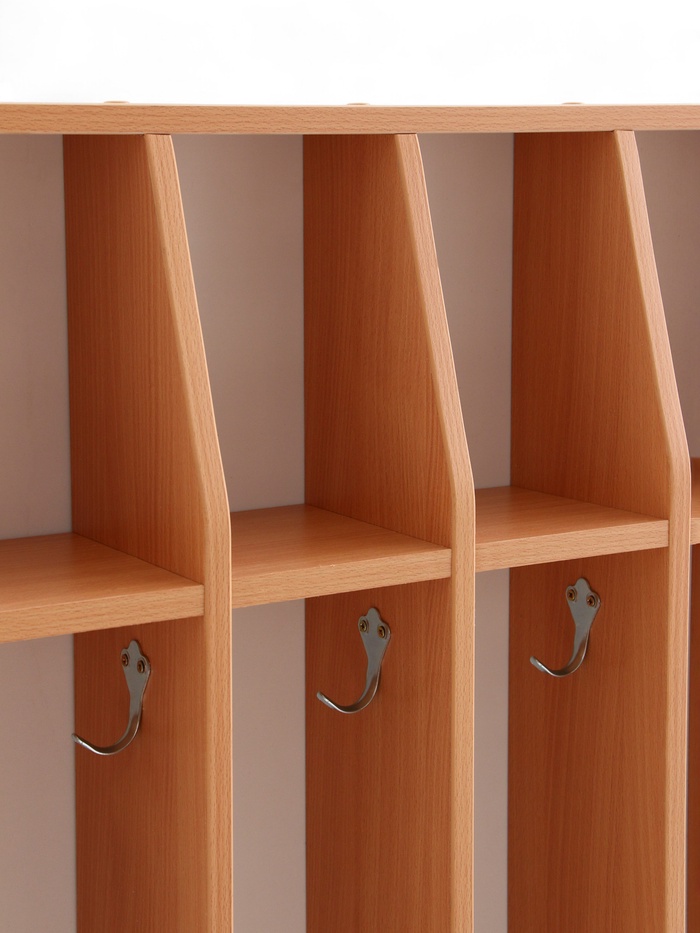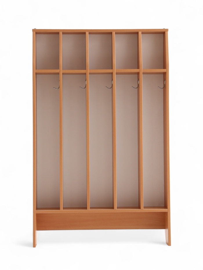 Используется в детских садах для организации личных гигиенических принадлежностей детей. Каждый ребенок получает собственное место для хранения полотенца, что помогает поддерживать порядок и личную гигиену. Полочки позволяют размещать не только полотенца, но и дополнительные предметы ухода. Изготовлен из ламинированной ДСП, безопасной и подходящей для использования в детских учреждениях.
