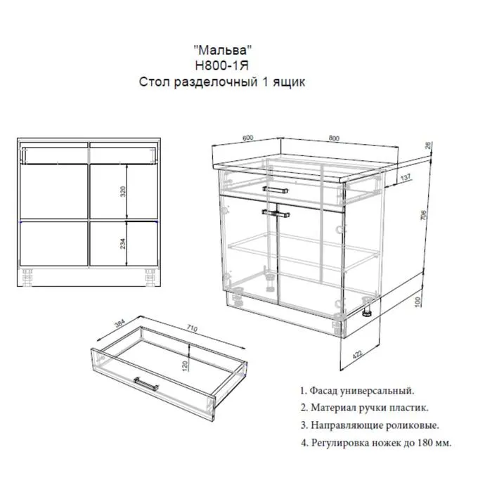 Шкаф напольный «Мальва. Н800-1Я», 800×450×840 мм, цвет венге/лоредо — Характеристики