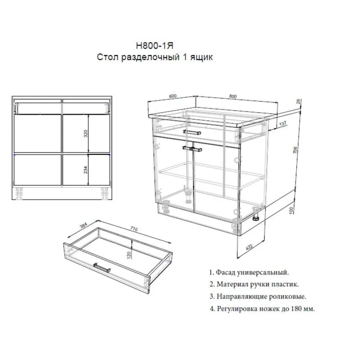 Шкаф напольный «Н800-1Я», 800×450×840 мм, цвет ясень шимо тёмный/ясень шимо светлый — Характеристики