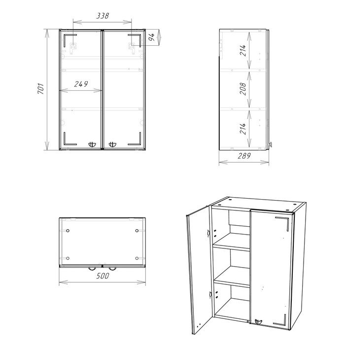 Шкаф навесной для ванной комнаты 02 – 50, 500×289×700 мм, цвет белый — Характеристики