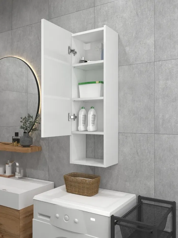 Белый оттенок шкафа создает впечатление чистоты и аккуратности, идеально сочетаясь с большинством оттенков сантехники и керамической плитки.