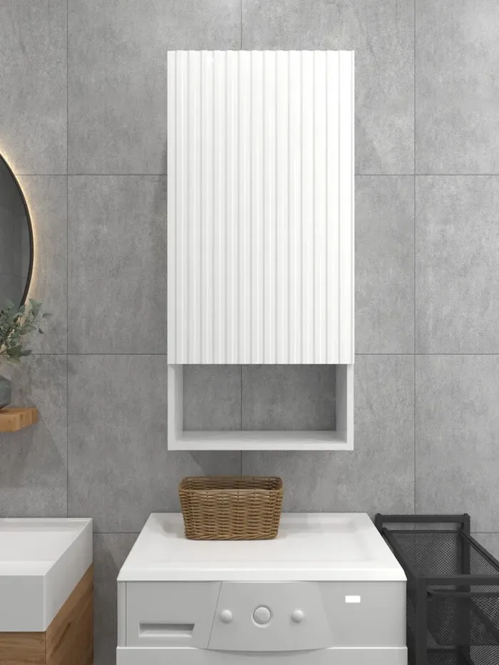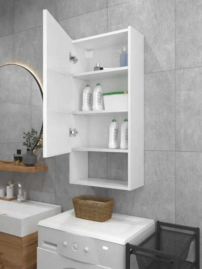 Белый оттенок шкафа создает впечатление чистоты и аккуратности, идеально сочетаясь с большинством оттенков сантехники и керамической плитки.